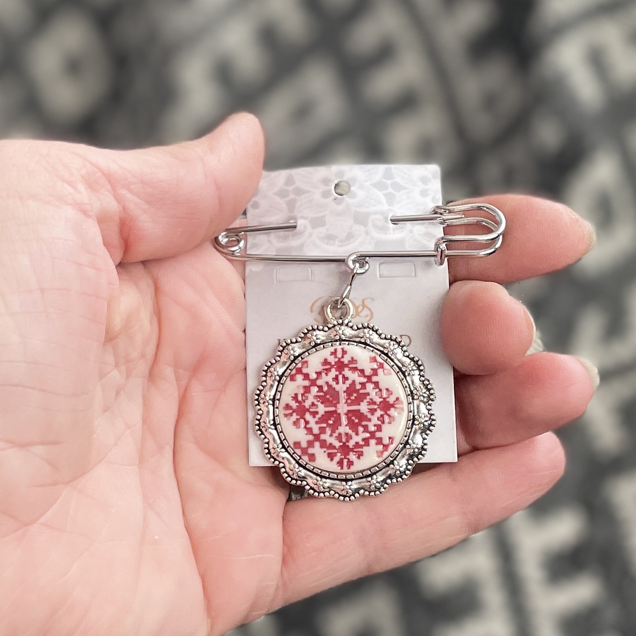 Haaknõel ripatsiga puna-valge MULGI TIKAND