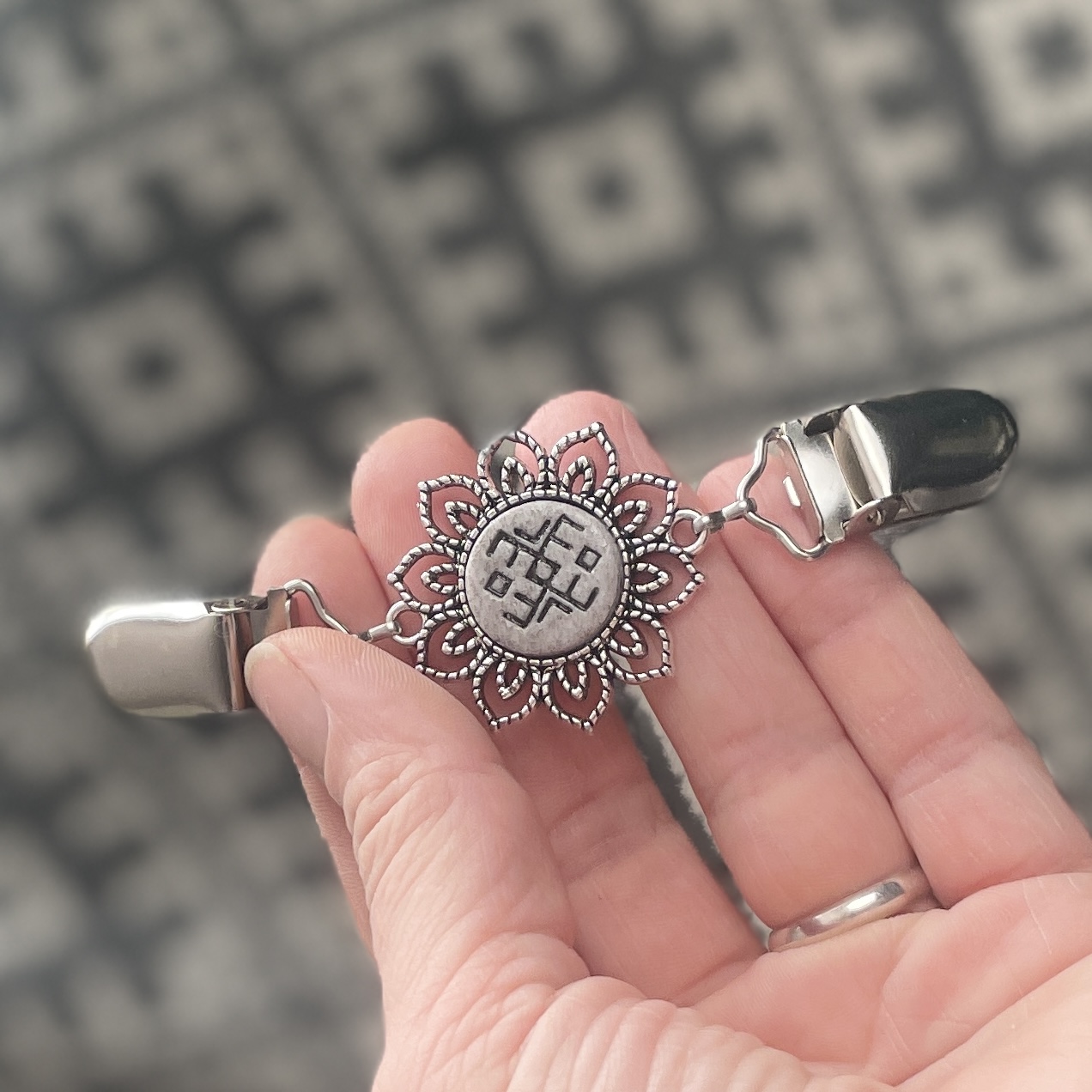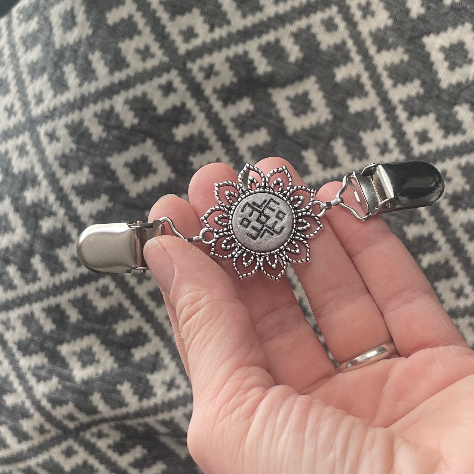 Kirivöö muster võetud Põltsamaa kirivöölt, aga seda on kindalsti mujal veel. Tugev kodu ja pere kaitse sümbolid koos.
