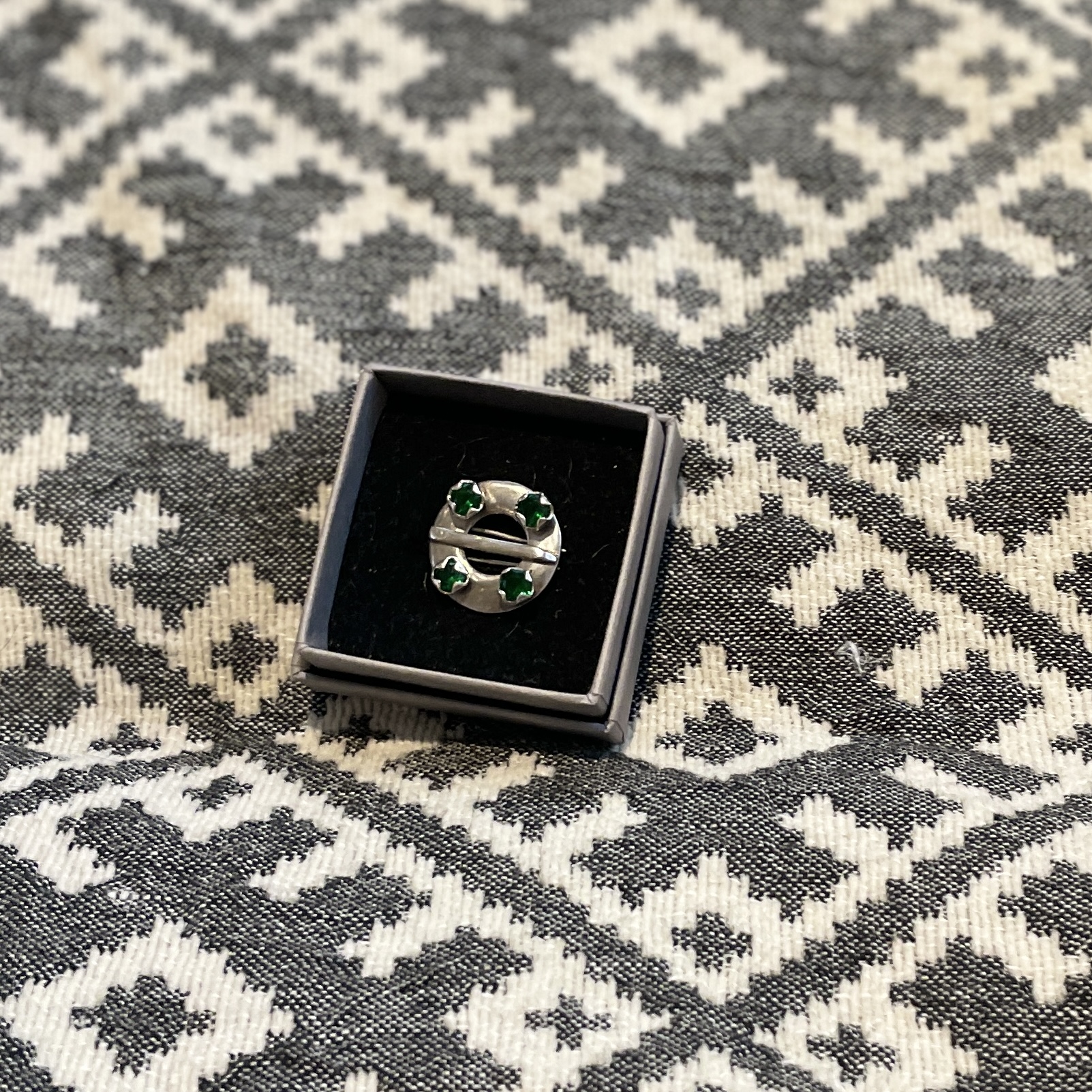 Silmadega vitssõlg-pross, taga prossi kinnitus. Kahe nõelaga, et ei kaoks kandmisel.