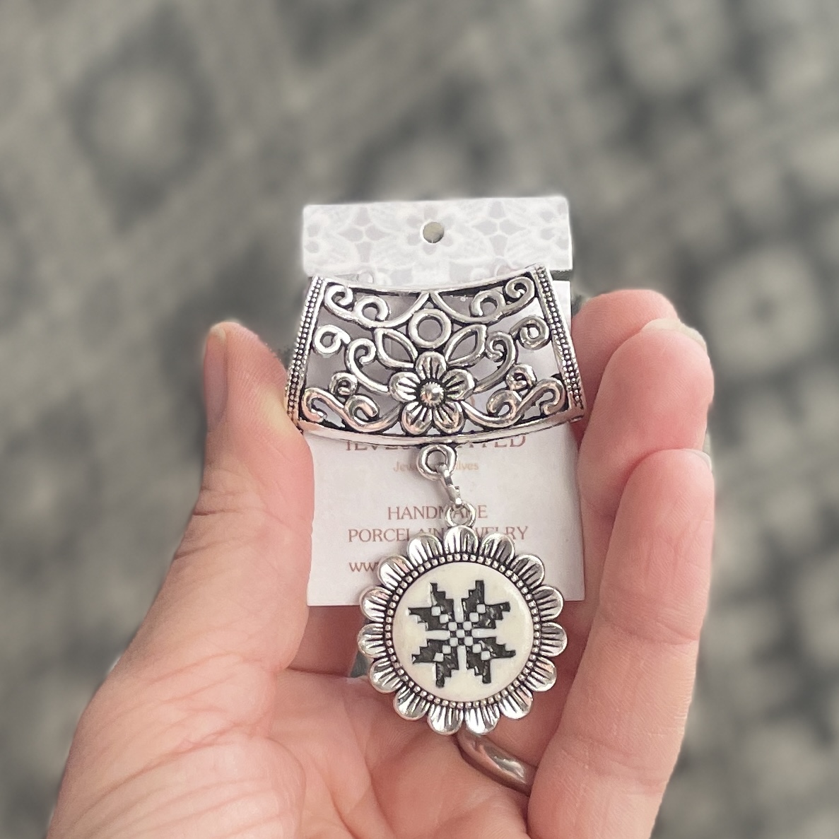 Käsitööna valminud rahvuslikud portselanehted. Ilusad, silmapaistvad, sobivad kandmiseks nii pidu- kui argipäeval.