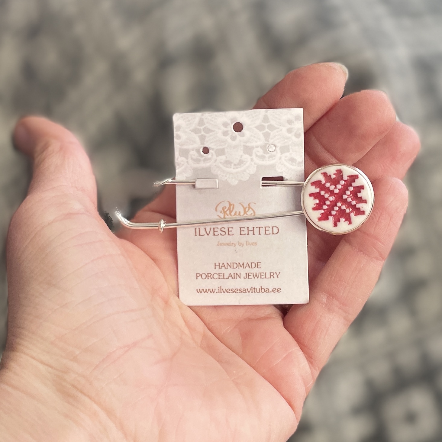 Käsitööna valminud rahvuslikud portselanehted. Ilusad, silmapaistvad, sobivad kandmiseks nii pidu- kui argipäeval.