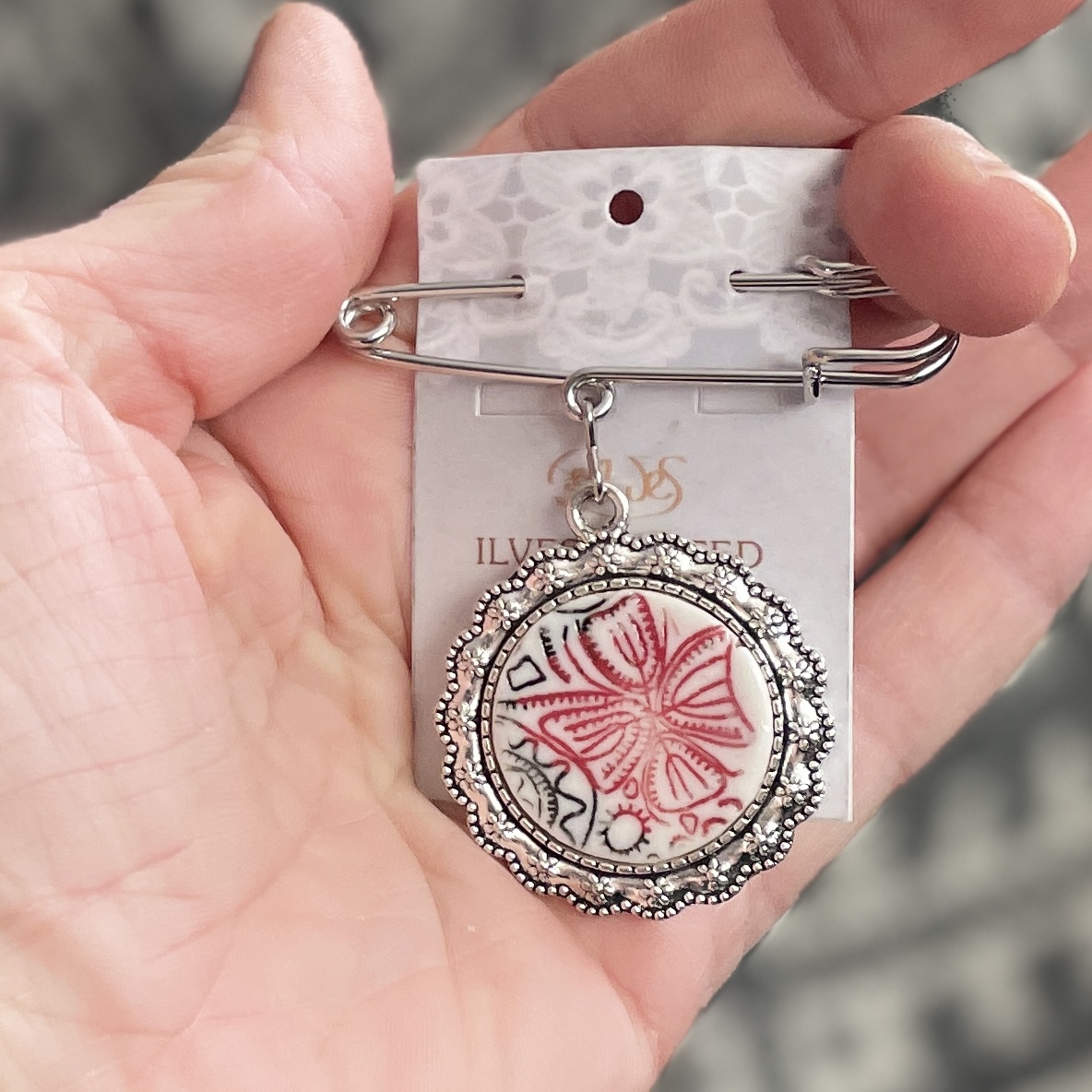 Haaknõel ripatsiga puna-must MULK