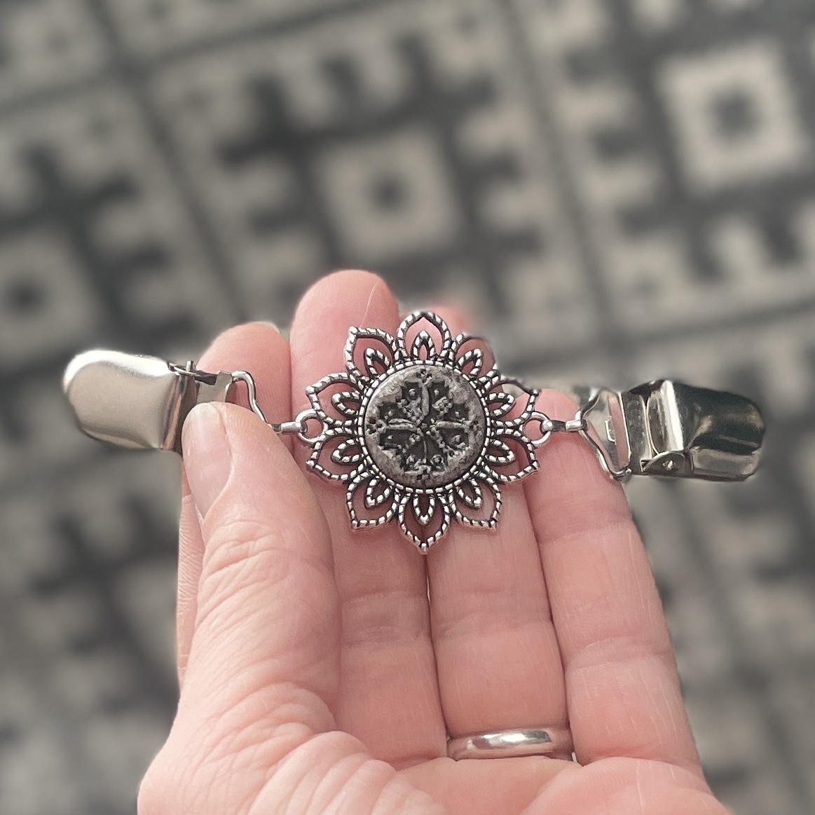 Hõlmahoidik hall KIHNU ROOS. Sobib nööbita kampsunile, jakile või tõmmata kleit taljesse.
