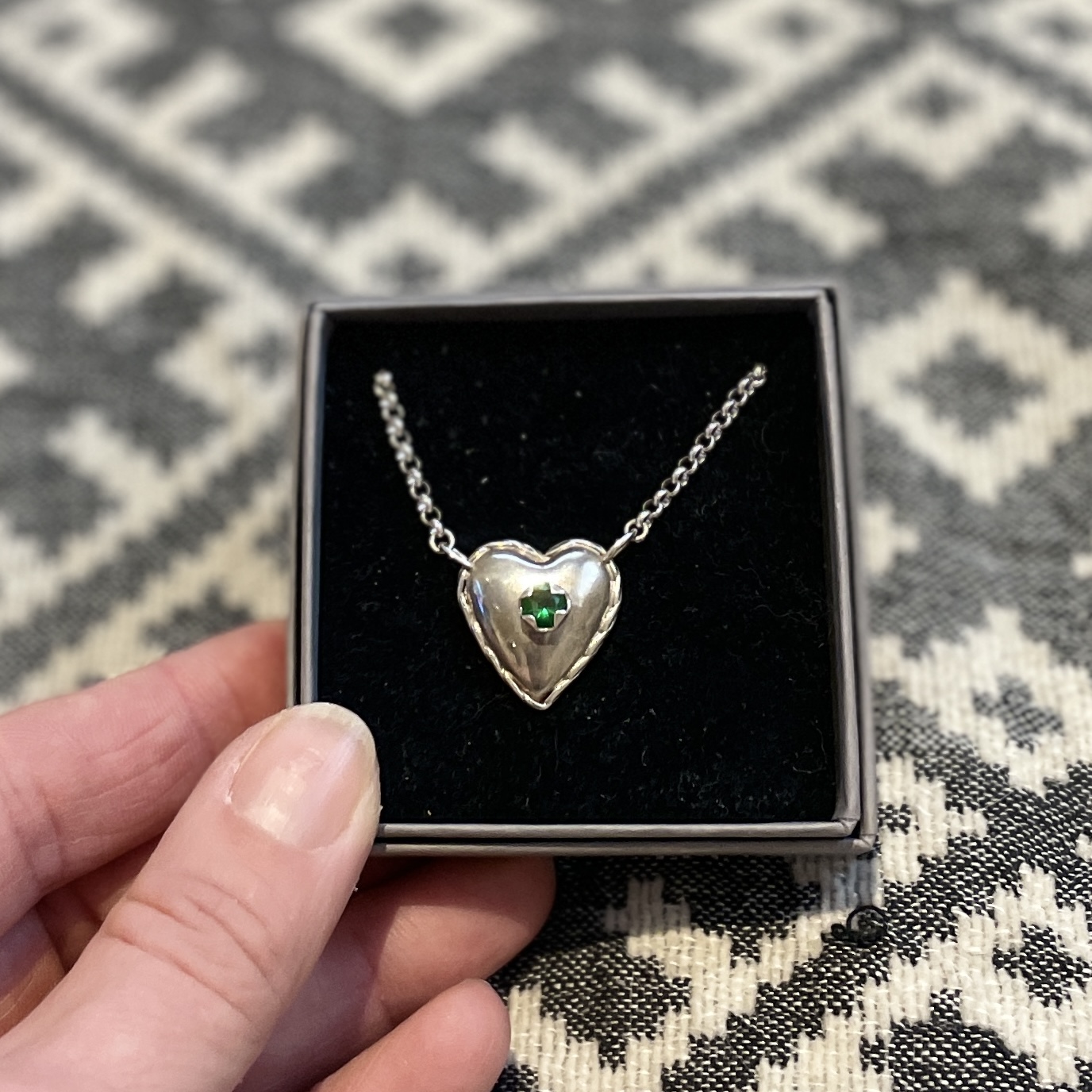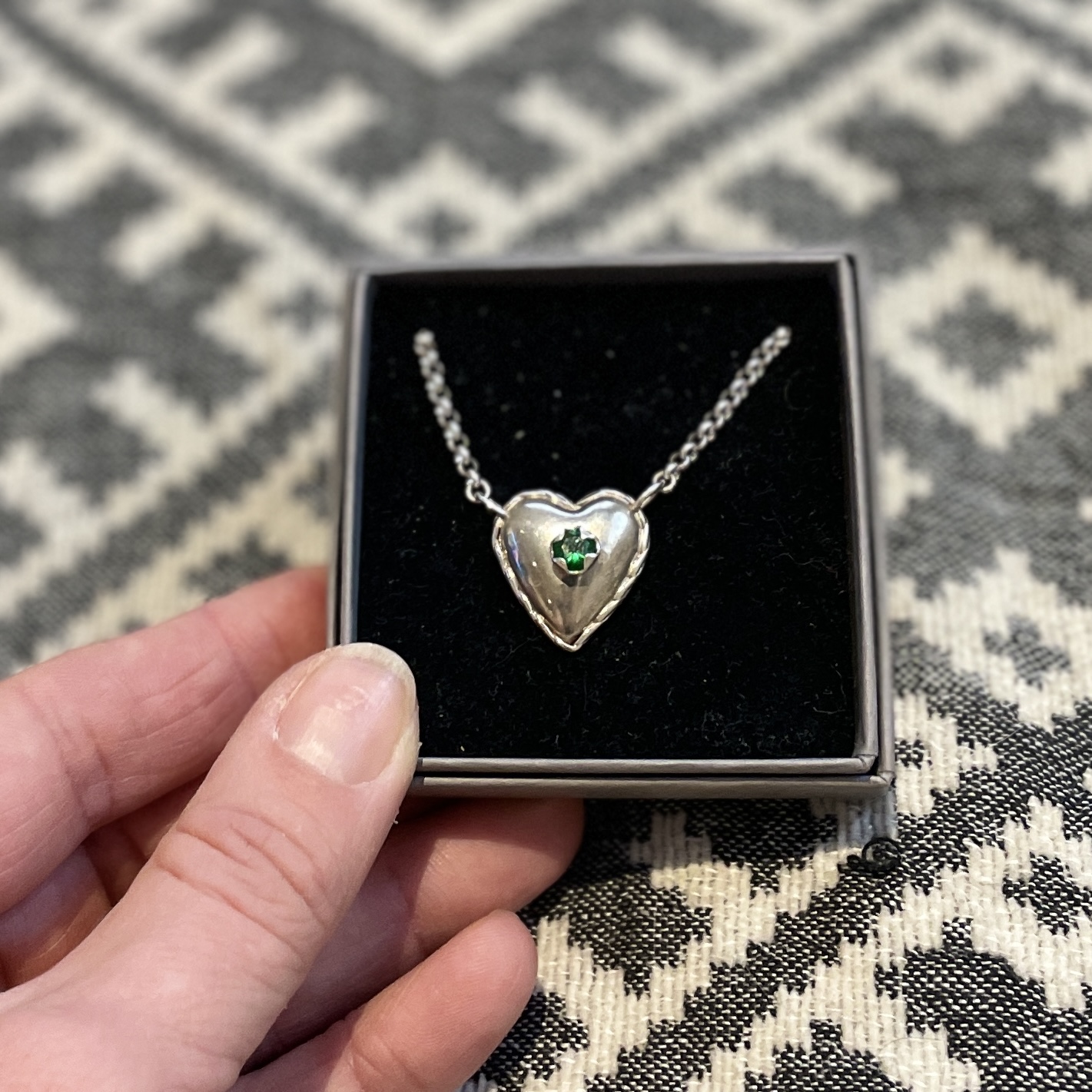 Kullassepatööna valminud, südame suurus 20 x 18,68 mm