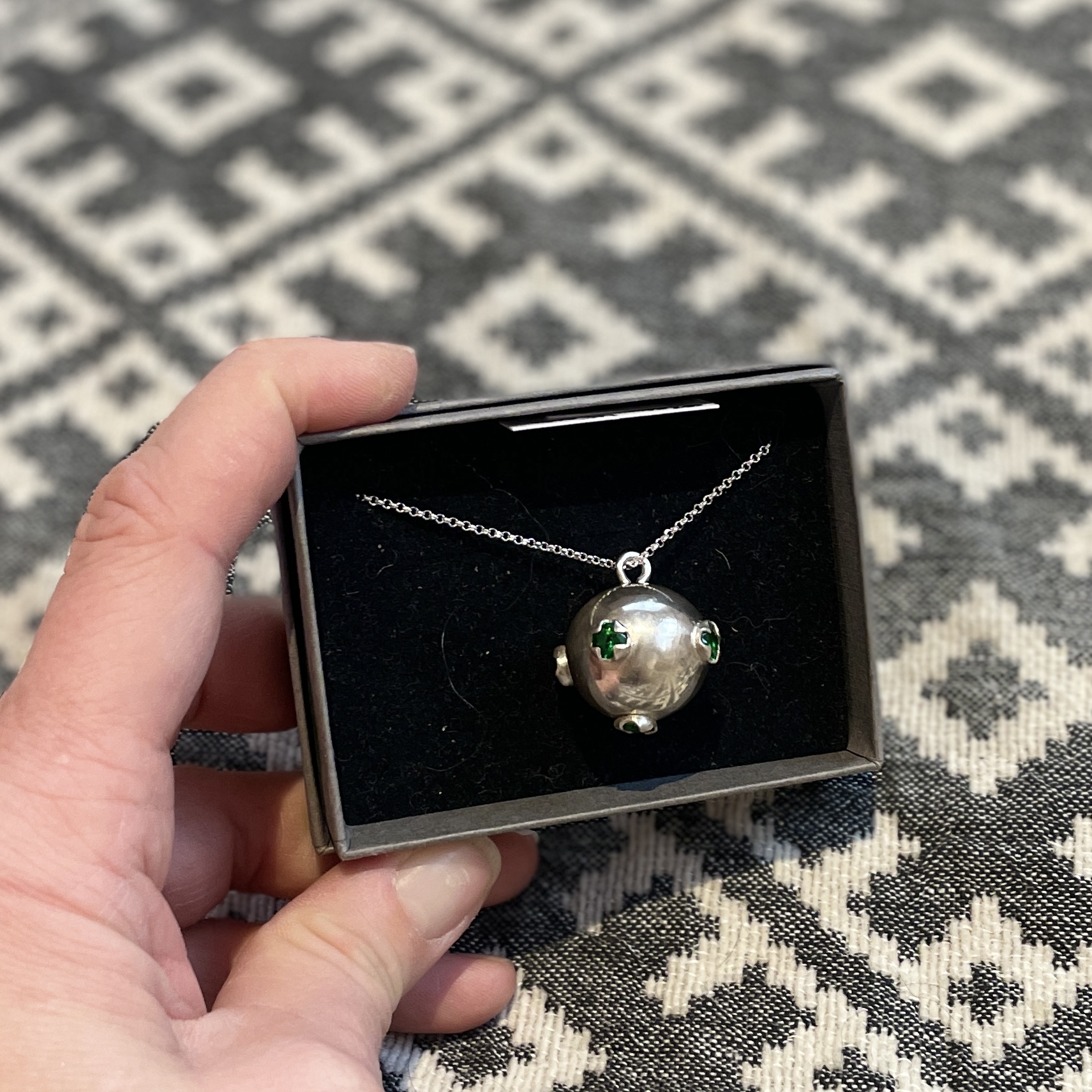 Esileht / METALLEHISTÖÖ / Roheliste silmadega nöps koos keega Roheliste silmadega nöps koos keega165.00€ sis. KM 1 laos Roheliste silmadega nöps koos keega kogus Lisa korvi Kategooria: METALLEHISTÖÖ Kirjeldus Kirjeldus Kee Nöpsiga, silmad 6 mm Kullassepatööna valminud, nöpsi lõbimõõt ca 21 mm, kee pikkus 45 Materjal: 925 hõbe ja klaas kaal: nöps 8,5 grammi, kee 2,7 gr Seotud tooted Sõrmus Lehed 65.00€ sis. KM Lisa korvi Tsaari 15-kopikalised kõrvarõngad 29.00€ sis. KM Lisa korvi Sõrmus Lehed 65.00€ sis. KM Lisa korvi Kee Südamega 165.00€ sis. KM Lisa korvi