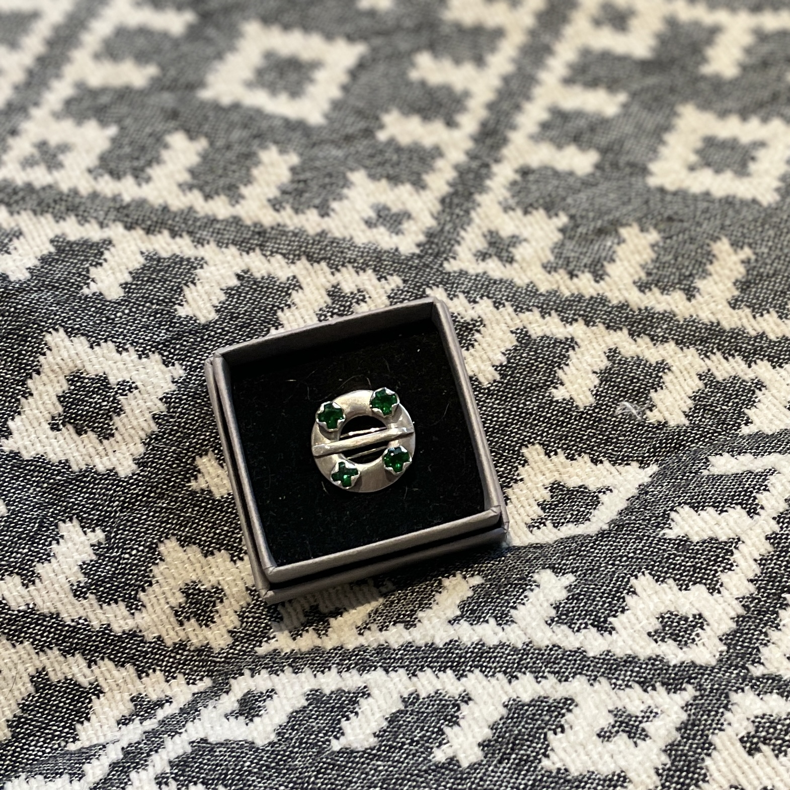 Silmadega vitssõlg-pross, taga prossi kinnitus. Kahe nõelaga, et ei kaoks kandmisel.