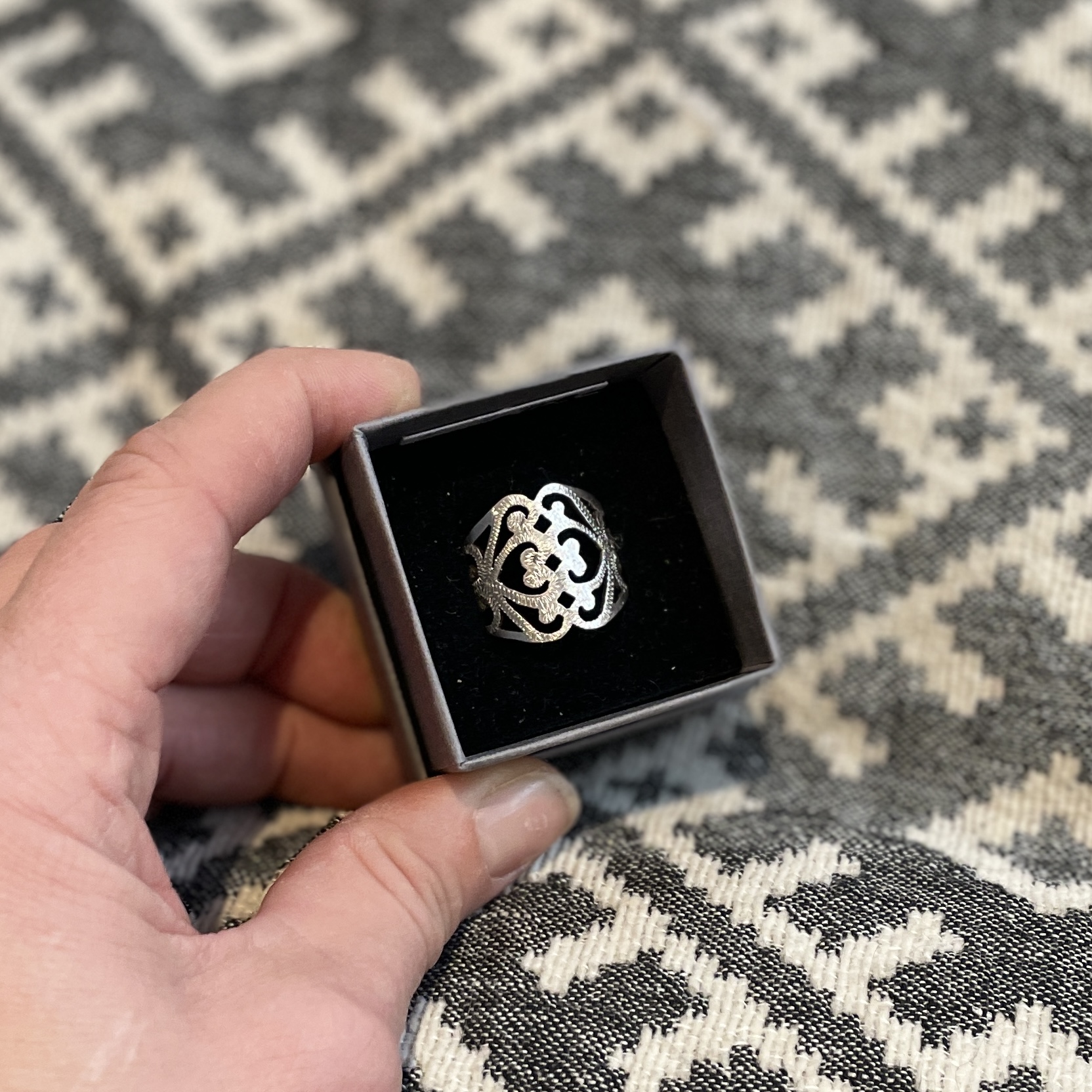 Esileht / METALLEHISTÖÖ / Sõrmus Kohtumised Sõrmus Kohtumised95.00€ sis. KM 1 laos Sõrmus Kohtumised kogus Lisa korvi Kategooria: METALLEHISTÖÖ Kirjeldus Kirjeldus 925 saetud mustriga, graveeritud sõrmus. Kullassepatööna valminud suurus 19,5 Materjal: hõbe kaal: 5,1 grammi Seotud tooted Kõrvarõngas SÜDAMED sinised 145.00€ sis. KM Lisa korvi Sõrmus 8 mm silmaga 69.00€ sis. KM Lisa korvi Sõrmus Seljad koos 86.00€ sis. KM Lisa korvi Sõrmus Südamed 60.00€ sis. KM Lisa korvi