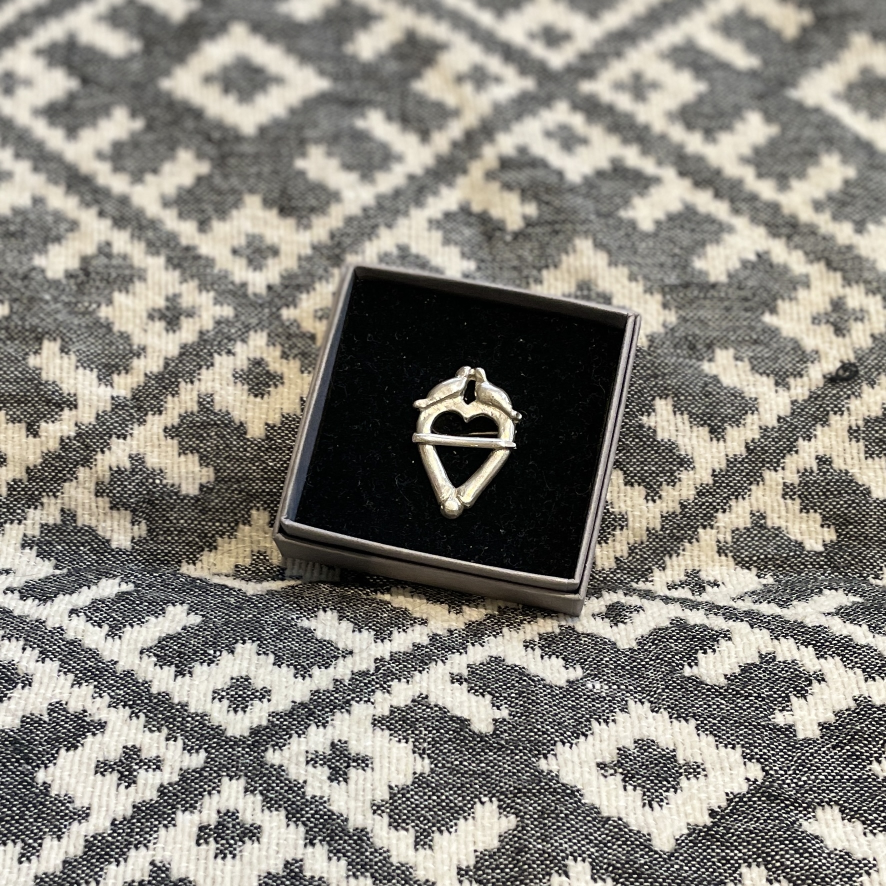 Südamekujuline vitssõlg-pross lindudega, ajaloolise järgi tehtud.